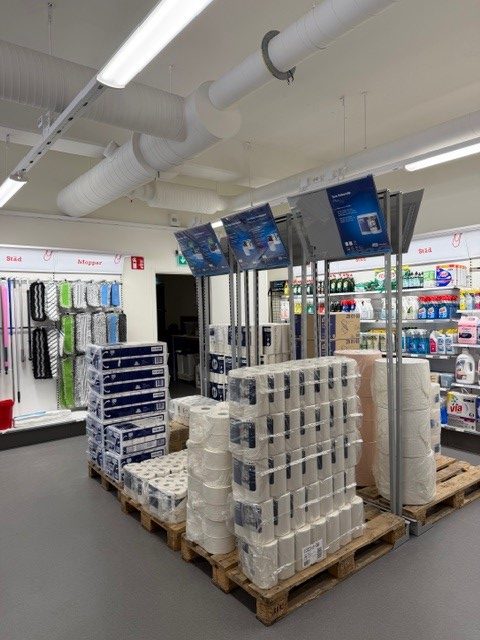 Vi erbjuder ett brett sortiment och praktiska lösningar för företag som vill samla sina inköp på ett ställe. Oavsett om ni driver kontor, butik, industri, lager, offentlig verksamhet eller annan arbetsplats hjälper vi er att hitta rätt produkter för både den dagliga driften och den långsiktiga arbetsmiljön.