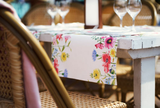 - Information Bordslöpare i blommigt mönster, Flowy Meadow. FSC-märkt. 4rl/krt.