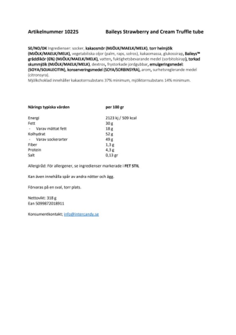 Utsökt god tryffel med äkta Bailyes Strawberry liqueur. Vikt 318 g.