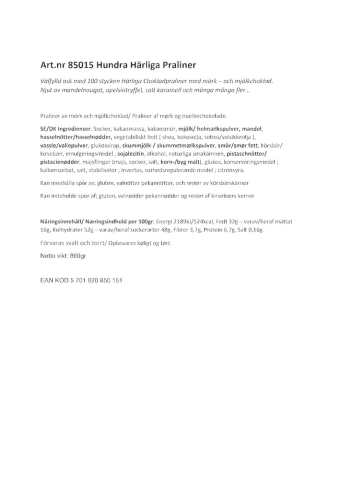 85015 - Chokladask Hundra härliga praliner 860g