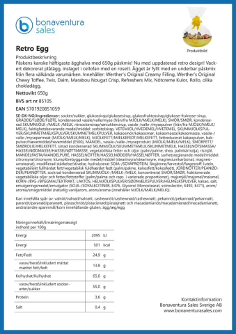 Dekorerat plåtägg inslaget i cellofan och med rosett. Fyllt med underbar påskmix av välkända varumärken. Mått: 16x24,5cm. Vikt 650gram.