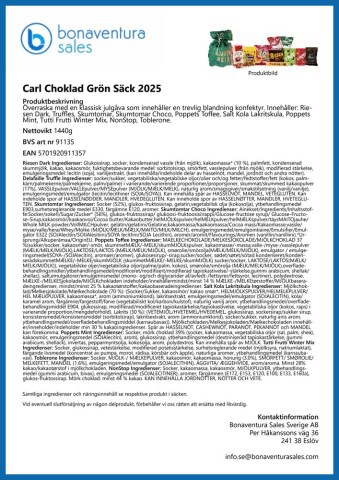 - Information Grön jutesäck fylld med godis av enbart kända varumärken.
