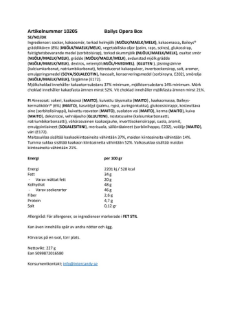 - Information Utsökta praliner av vit, mjölk- och mörk choklad smaksatta med äkta Baileys Original Cream likör. 227 g.