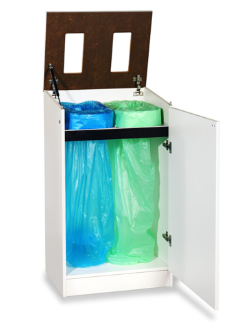 - Information Ett modulsystem för avfallshantering och källsortering. Vid säckbyte öppnas dörrarna och även toppskivan är öppningsbar. Mått H x B x D: 1000 x 565 x 440 mm. Inkastöppning 100 x 220 mm x 2 st. Laddas med säckkassett Longopac Mini.