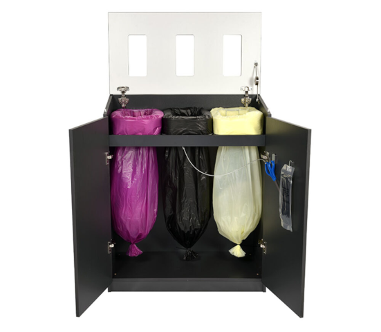 - Information Ett modulsystem för avfallshantering och källsortering. Vid säckbyte öppnas dörrarna och även toppskivan är öppningsbar. Mått H x B x D: 1000 x 820 x 440 mm. Inkastöppning 100 x 220 mm x 3 st. Laddas med säckkassett Longopac Mini.