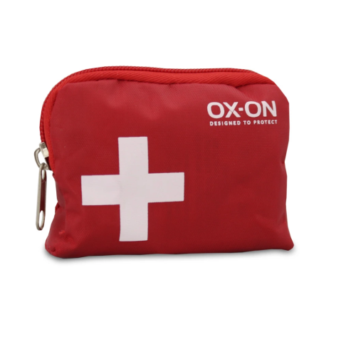 OX-ON First Aid Bag Comfort är ett första hjälpen-set i röd nylonpåse i fickformat. Innehåll: plåster, bandage etc. för användning vid mindre skador.